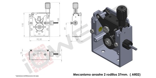 Mecanismo arrastre 2 rodillos 37mm.  ( AR02)