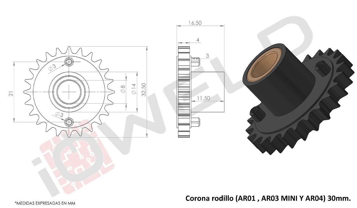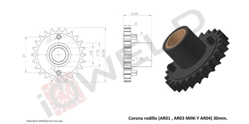 Corona rodillo (AR01 , AR03 MINI Y AR04) 30mm.