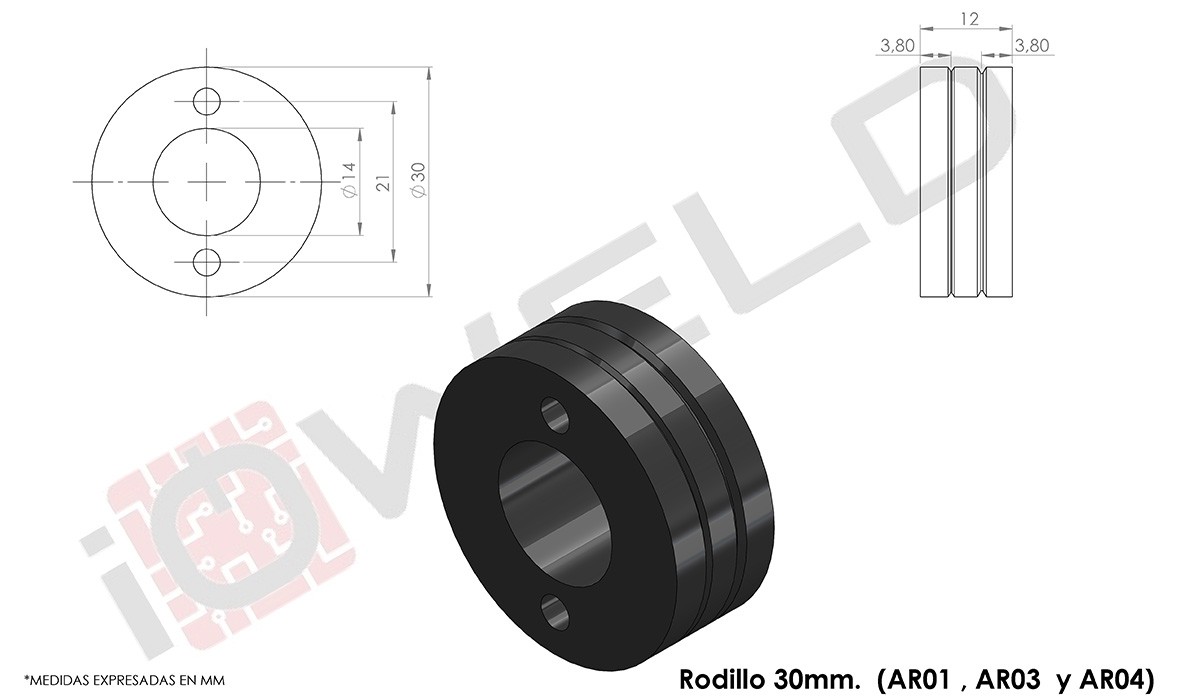 Rodillo diámetro 30mm con ranura optima para varilla tubulares (moleteado) 1,0 … 1,6 mm.