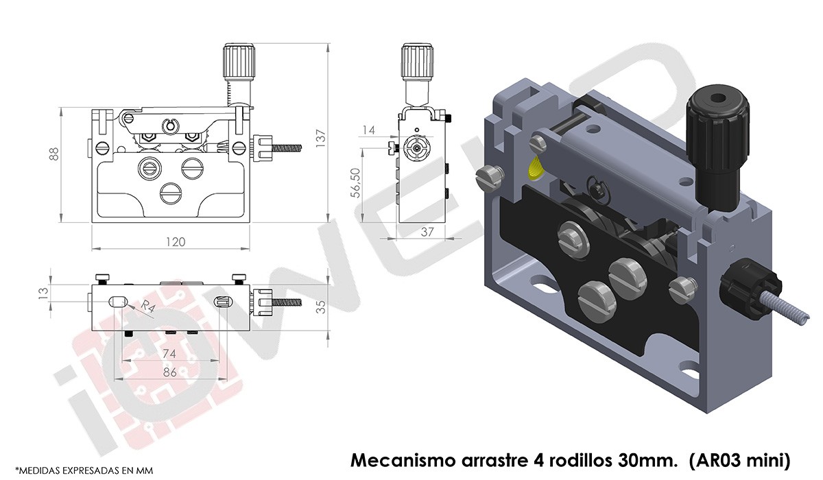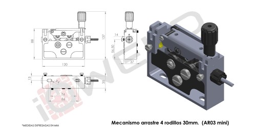 Mecanismo arrastre 4 rodillos 30mm. (AR03 mini)
