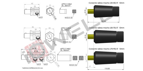Conector aéreo macho (35-50-70-90) ST  13mm