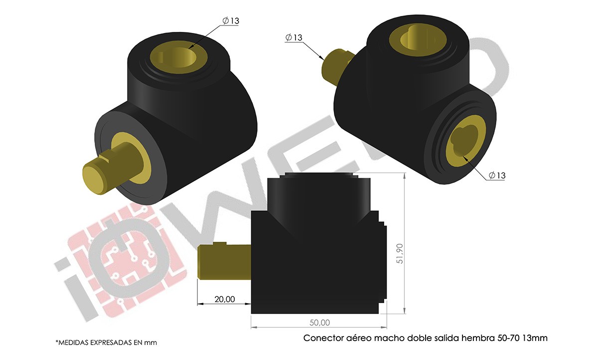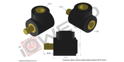 Conector aéreo macho doble salida hembra 50-70 13mm
