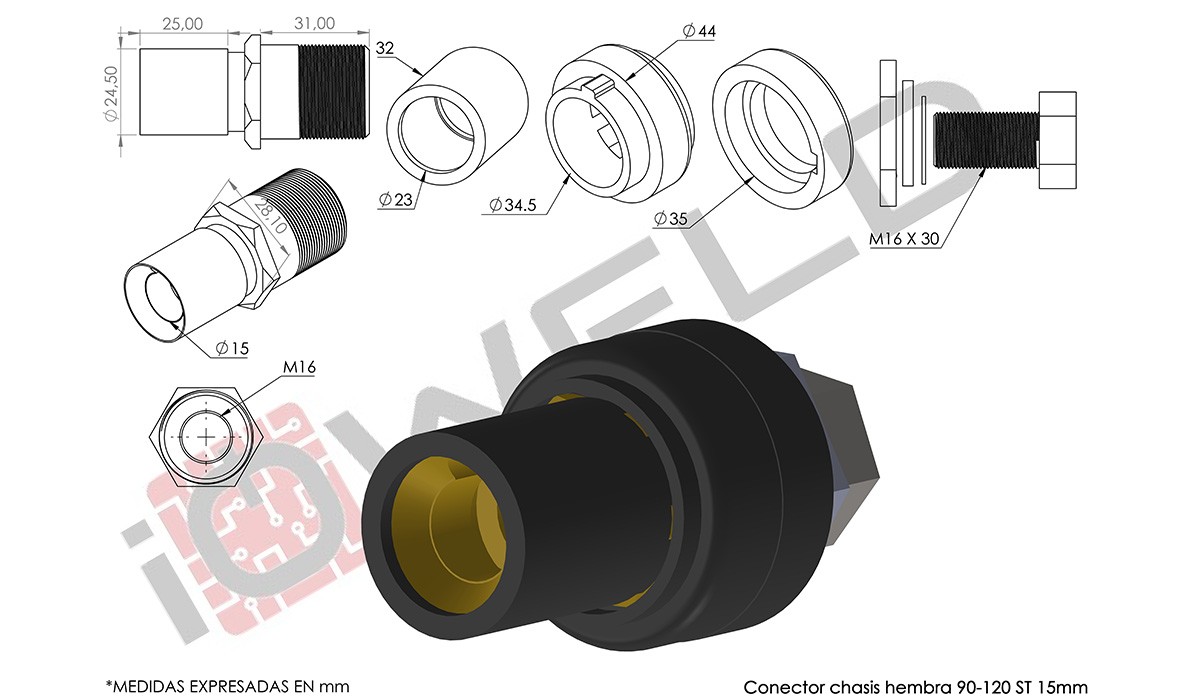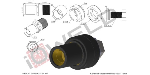 Conector chasis hembra 90-120 ST 15mm