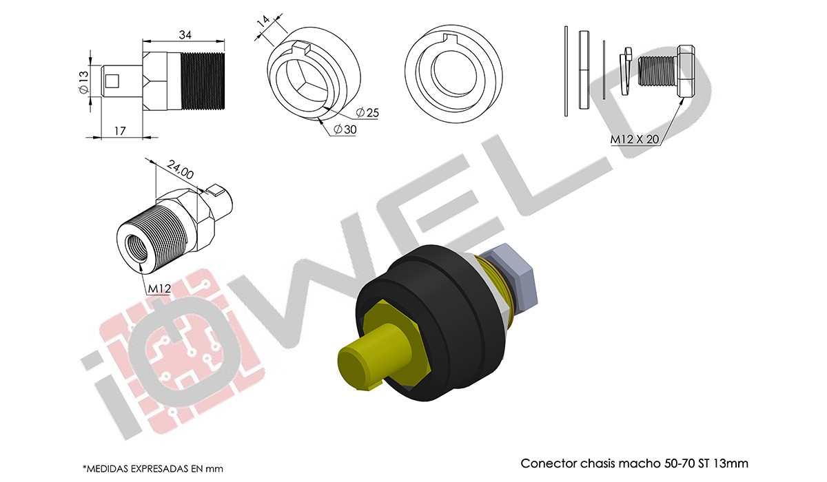 Conector chasis macho 50-70 ST 13mm