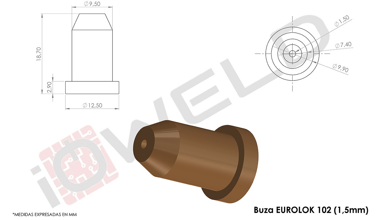 Boquilla (Ref. Ánodo) control chorro plasma tipo EUROLOK 102