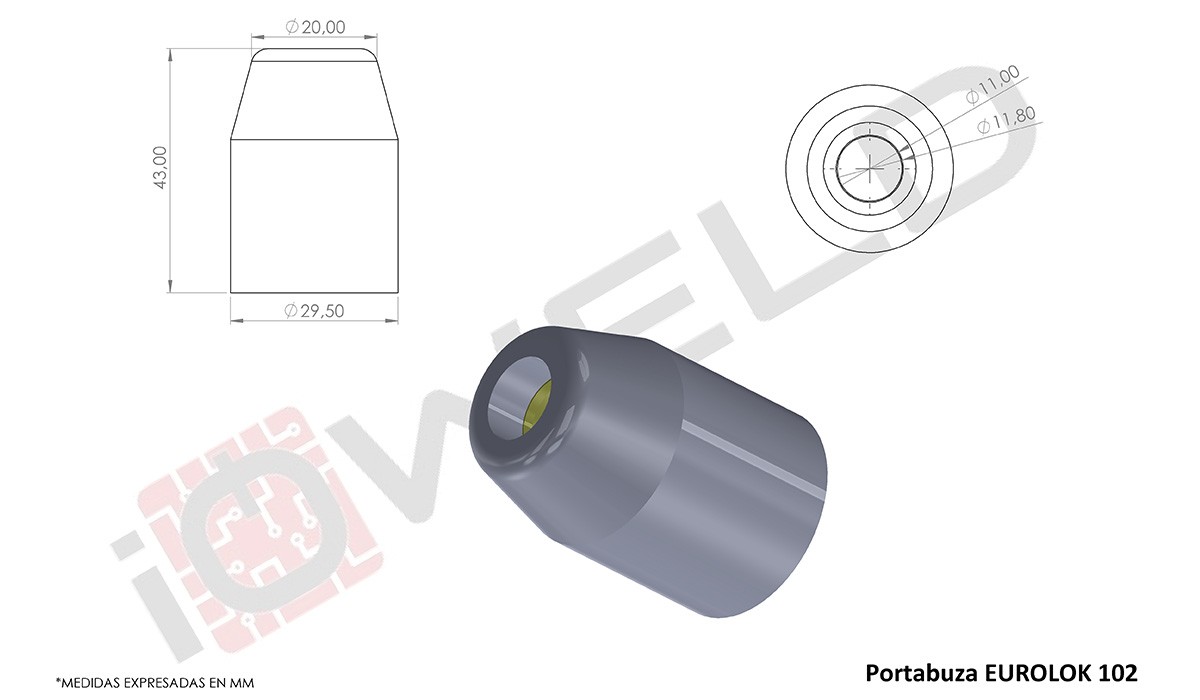 Tapa retención (buza-difusor-electrodo) tipo EUROLOK 102 con alojamiento patín