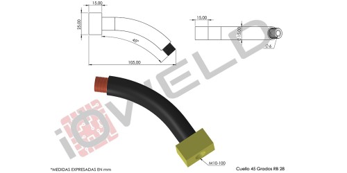 Cuello 45 grados manual tipo RB 28 refrigerado por gas
