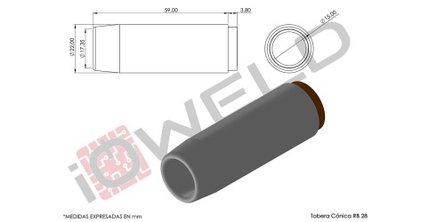 Boquilla gas cónica tipo RB 28 Recubrimiento Ni.