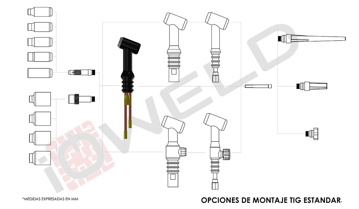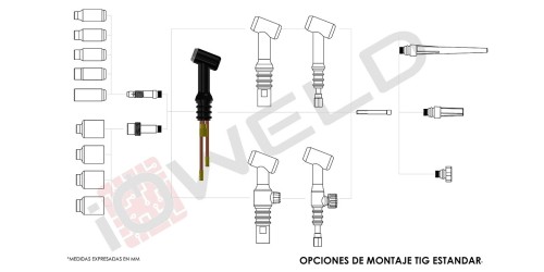 Cuerpo antorcha TIG tipo 18 refrigerado por liquido para equipos de accionamiento eléctrico y cebado HF