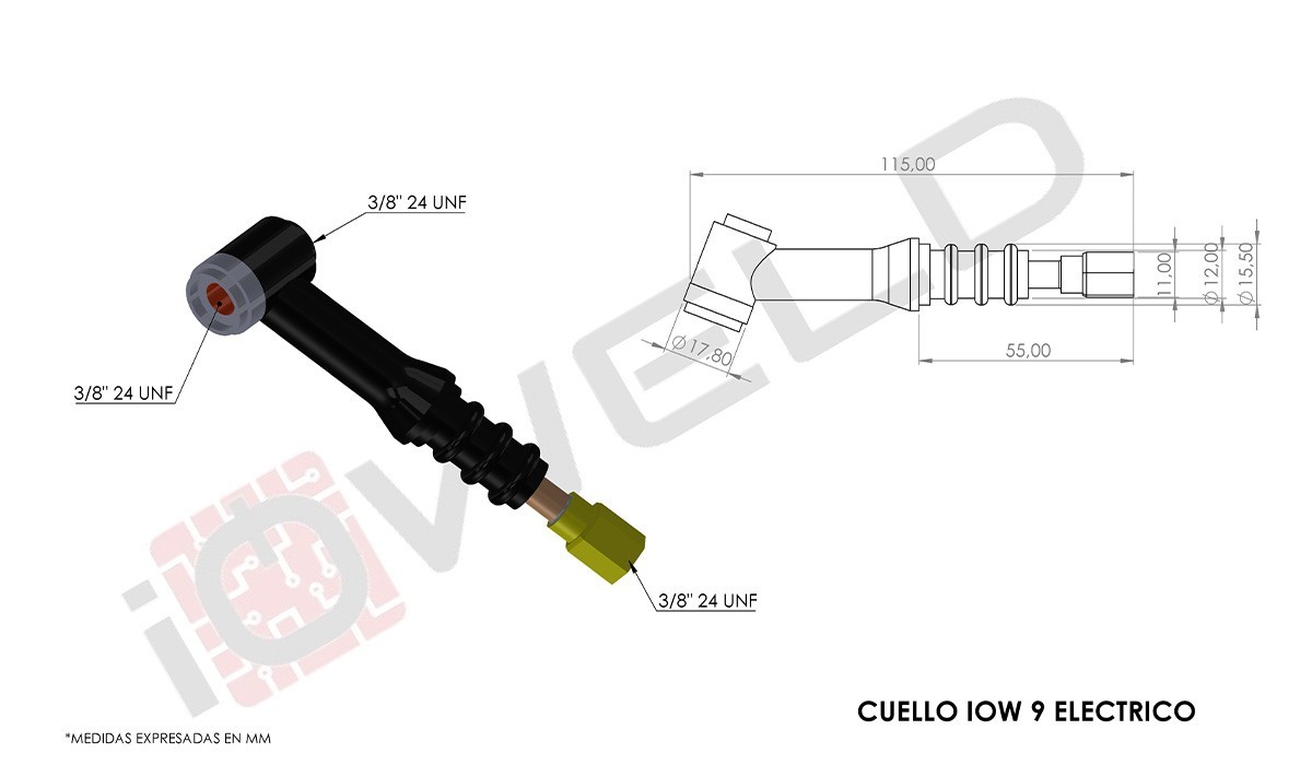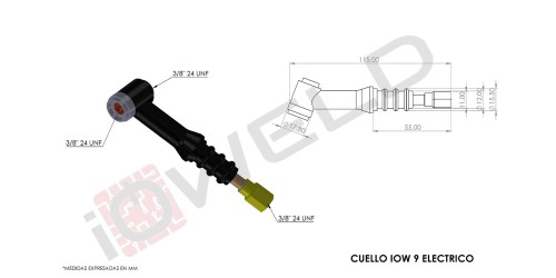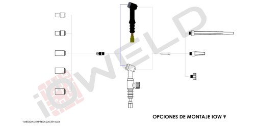 Cuerpo antorcha TIG tipo 9 refrigerado por gas para equipos de accionamiento eléctrico y cebado HF
