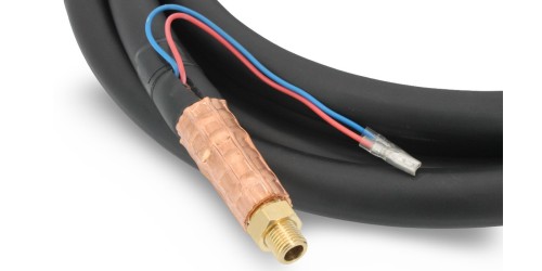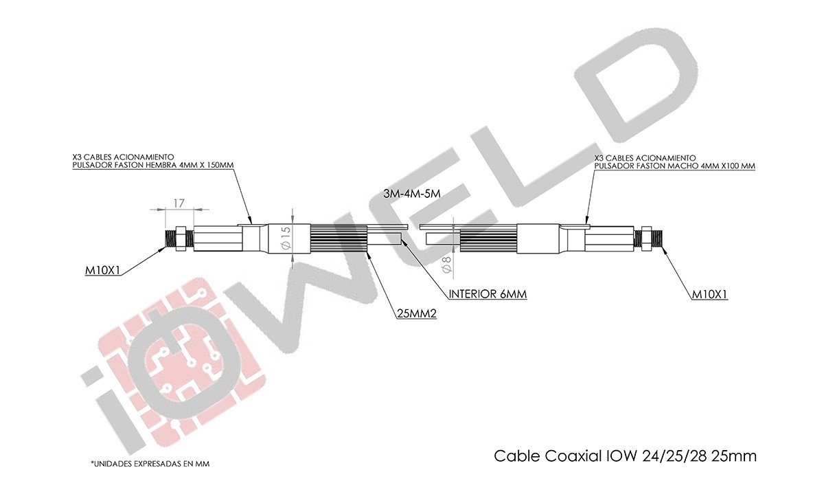 Conductor eléctrico  potencia de distribución axial con alojamiento para sirga y suministro de gas.