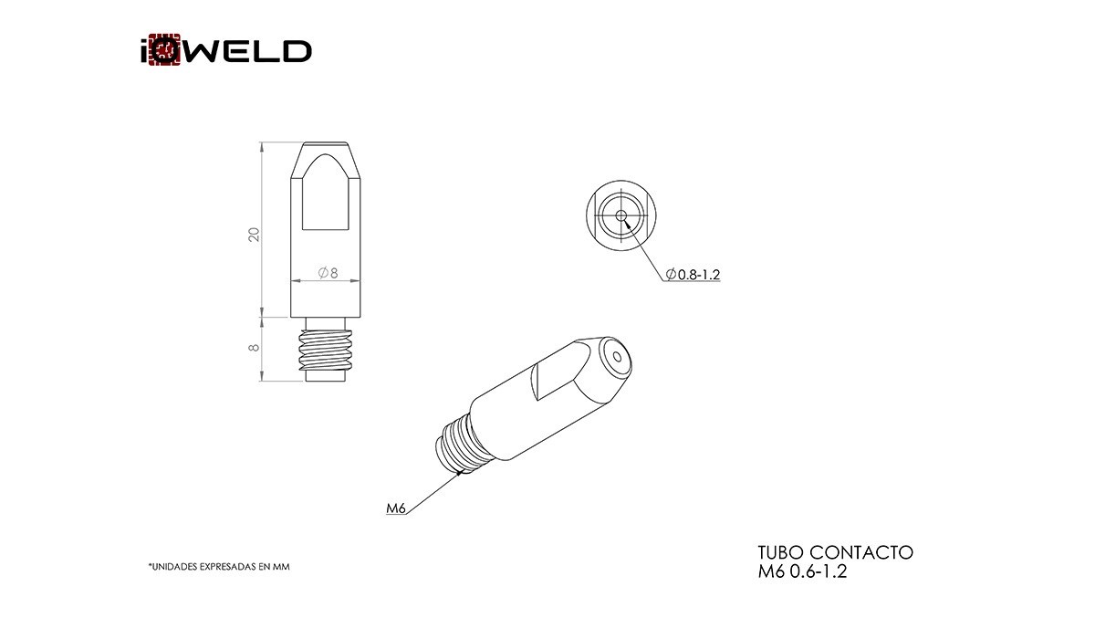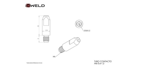 Punta de contacto Cu M6 soldadura Mig-Mag con hilo 0,6...1,2. Compatible IOW 24-25-36.