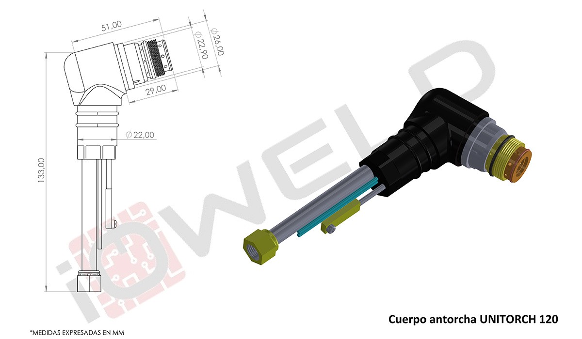 Cuello antorcha tipo UNITORCH 120 de mecanismo sellado estándar